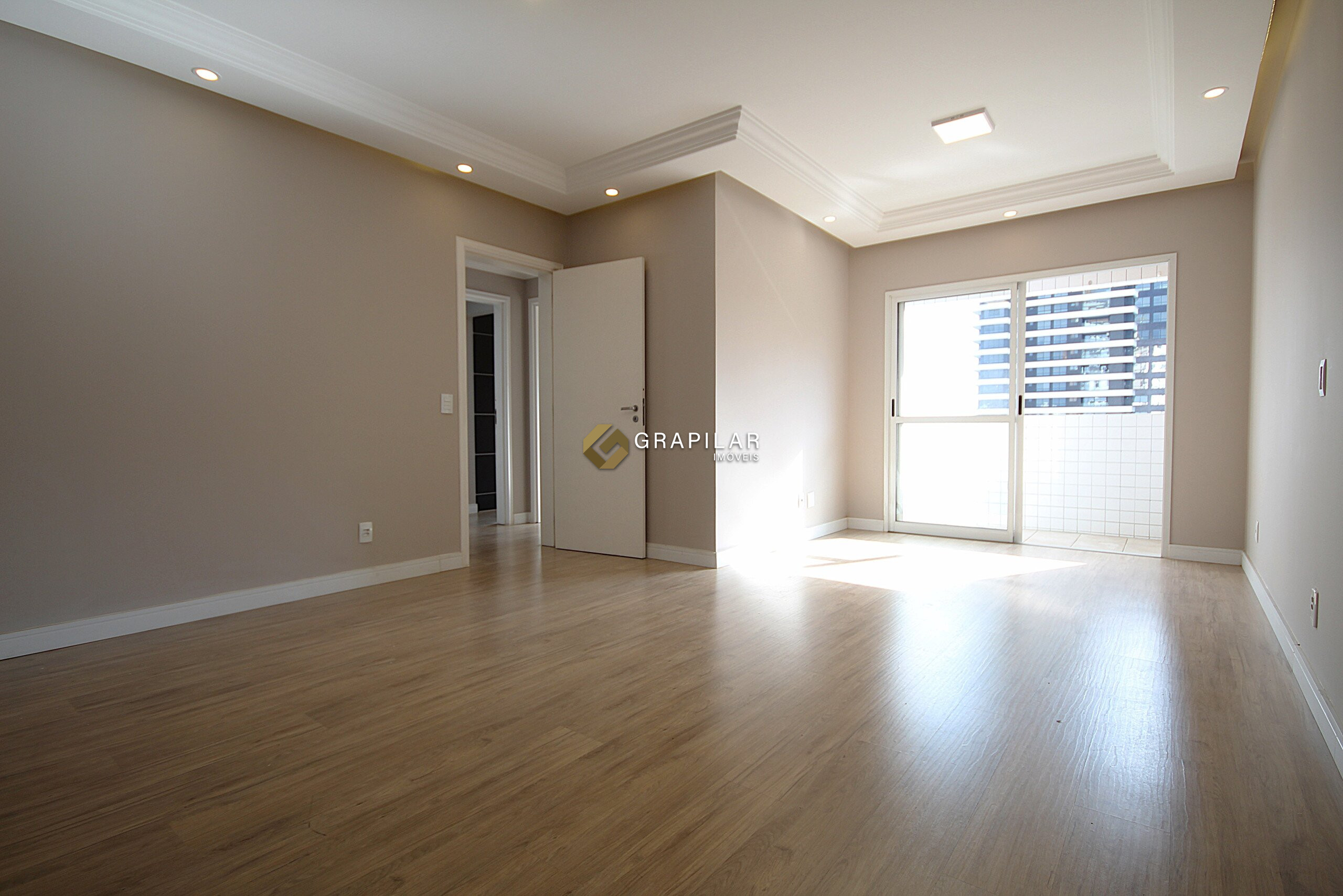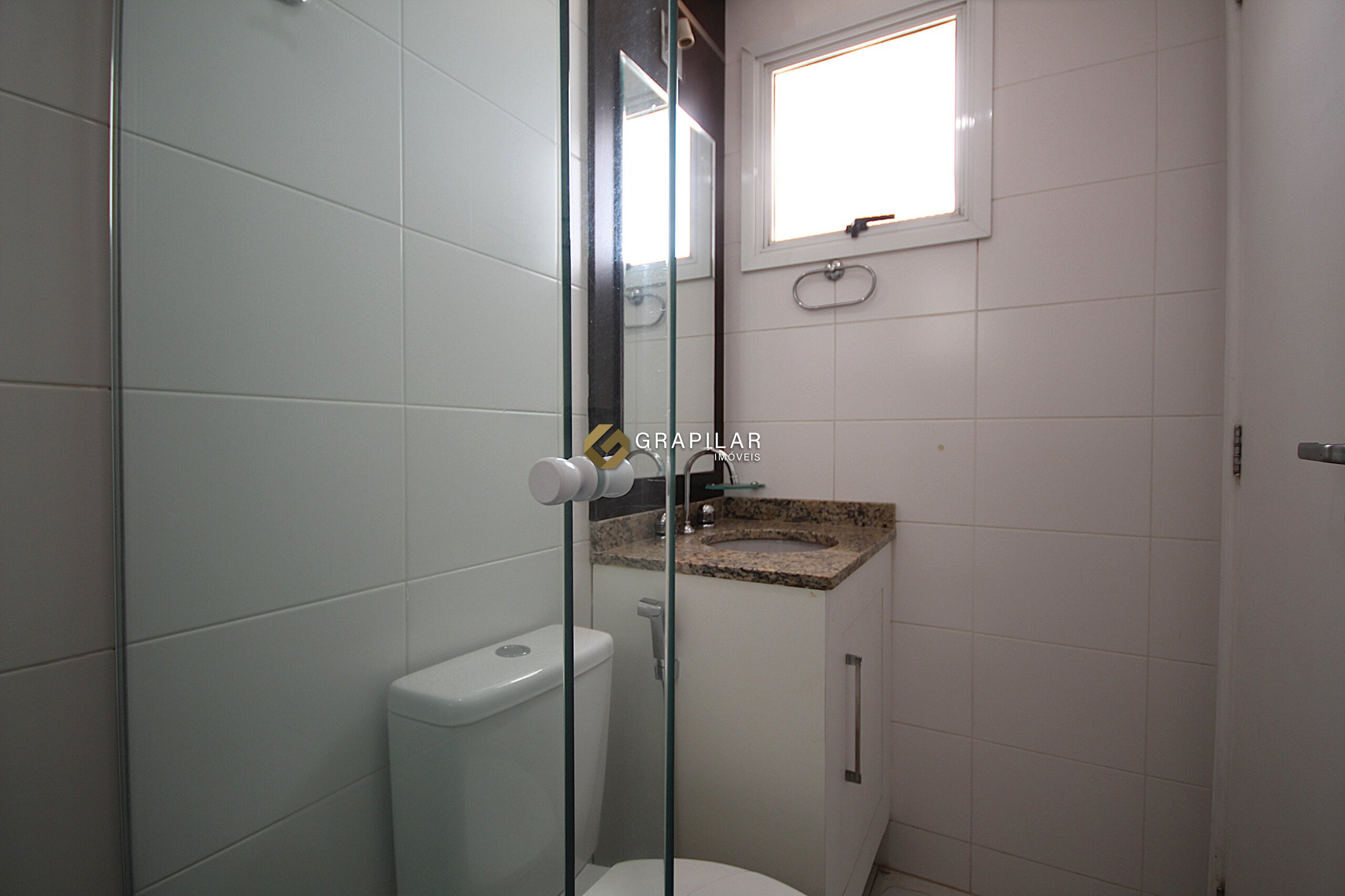O imóvel possui face oeste e 89m² de área privativa, distribuídos em três quartos, sendo duas suítes, sala para dois ambientes com sacada, proporcionando boa iluminação natural, cozinha funcional, área de serviço, central a gás, banheiro social e uma vaga de garagem livre.