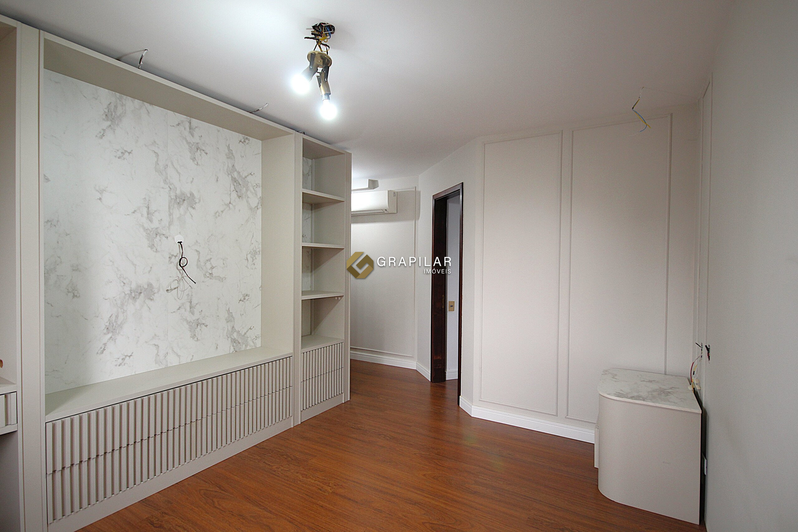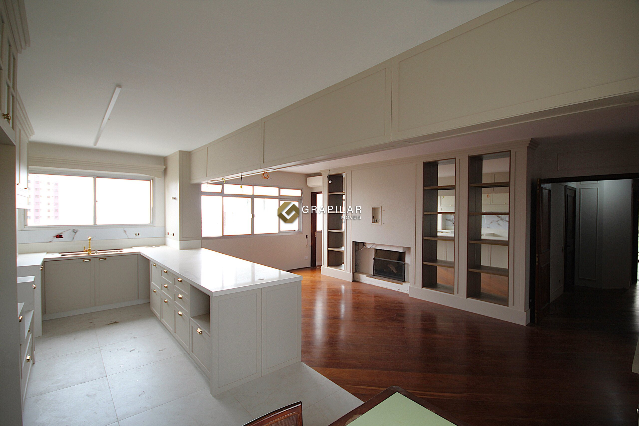 A planta é ampla e muito bem distribuída. São 4 dormitórios, sendo 2 suítes, com destaque para a suíte master com closet e ar-condicionado. As áreas sociais oferecem sala de estar com lareira e sacada, sala de TV, além de cozinha integrada à sala de jantar, também climatizada com ar-condicionado, criando ambientes confortáveis e funcionais para o dia a dia e para receber convidados.
