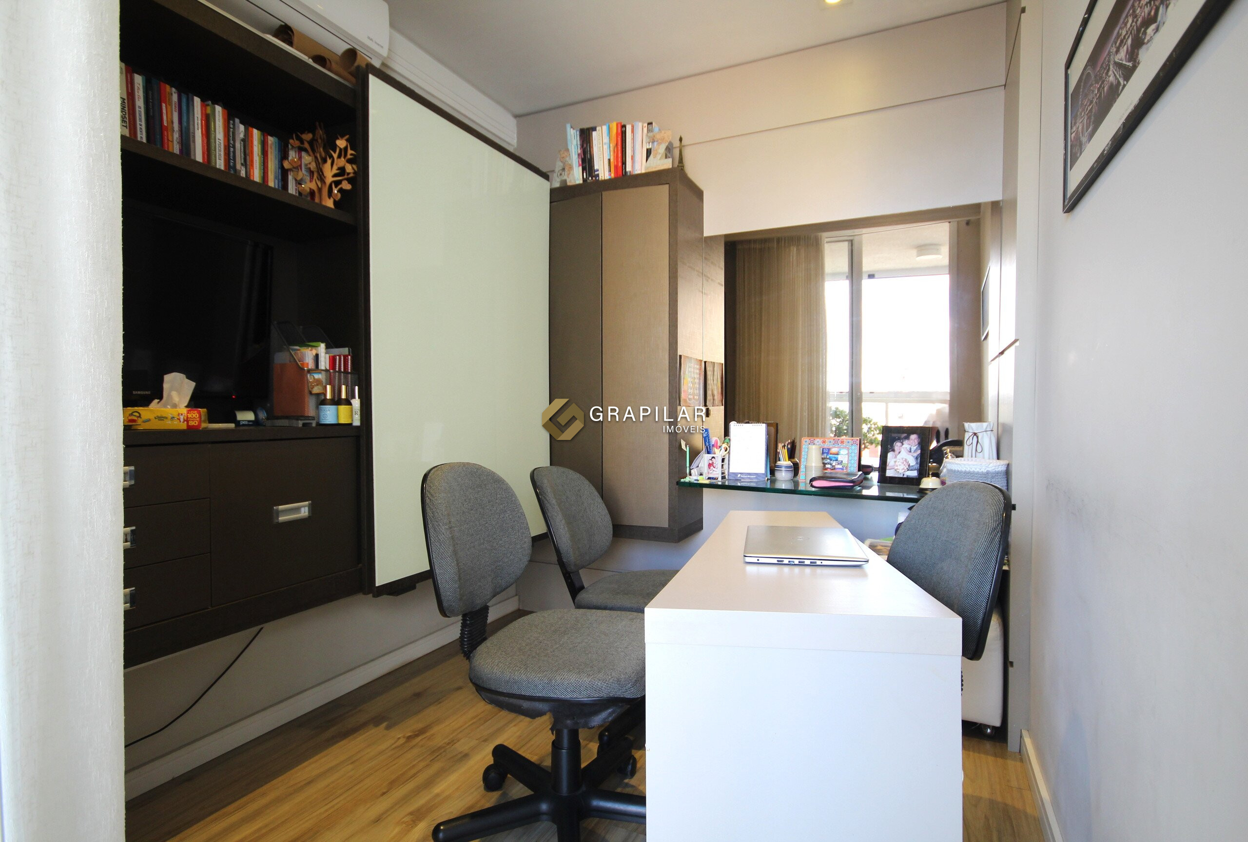 Excelente apartamento à venda no bairro Água Verde, em localização privilegiada e de fácil acesso, próximo ao Paseo República, McDonald’s, Hospital IPO e ao Shopping Água Verde. Com face norte/oeste e situado em andar alto, o imóvel é bem iluminado e ventilado, oferecendo 113 m² de área privativa muito bem distribuídos. São quatro quartos, sendo uma suíte, com um dos dormitórios atualmente adaptado para escritório, além de sala ampla para dois ambientes com sacada e churrasqueira, ideal para receber convidados. A cozinha é separada e funcional, com área de serviço independente, central a gás, ar-condicionado, banheiro social, lavabo e duas vagas de garagem. O acabamento combina porcelanato nas áreas molhadas e piso laminado nas áreas secas, garantindo conforto e praticidade.