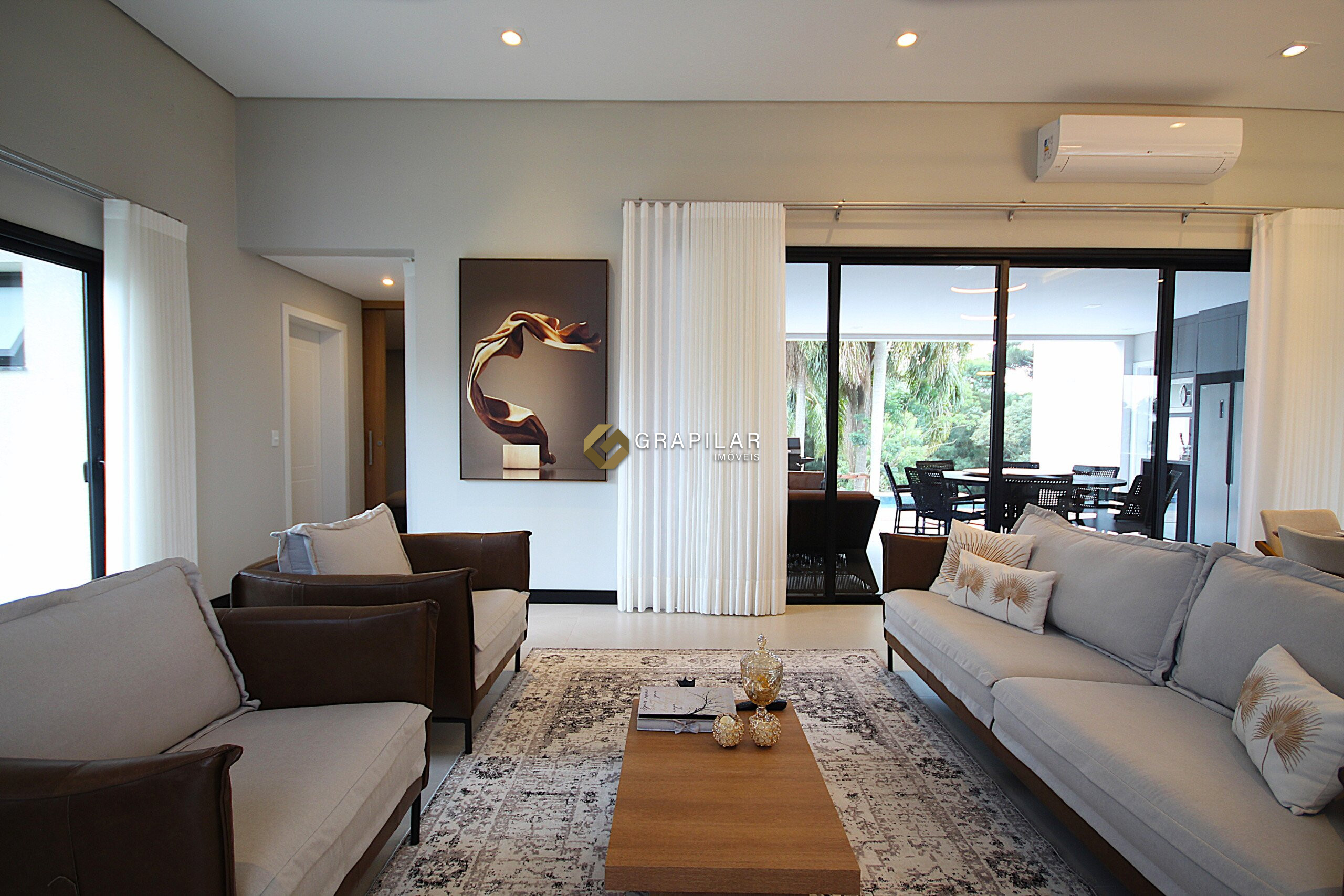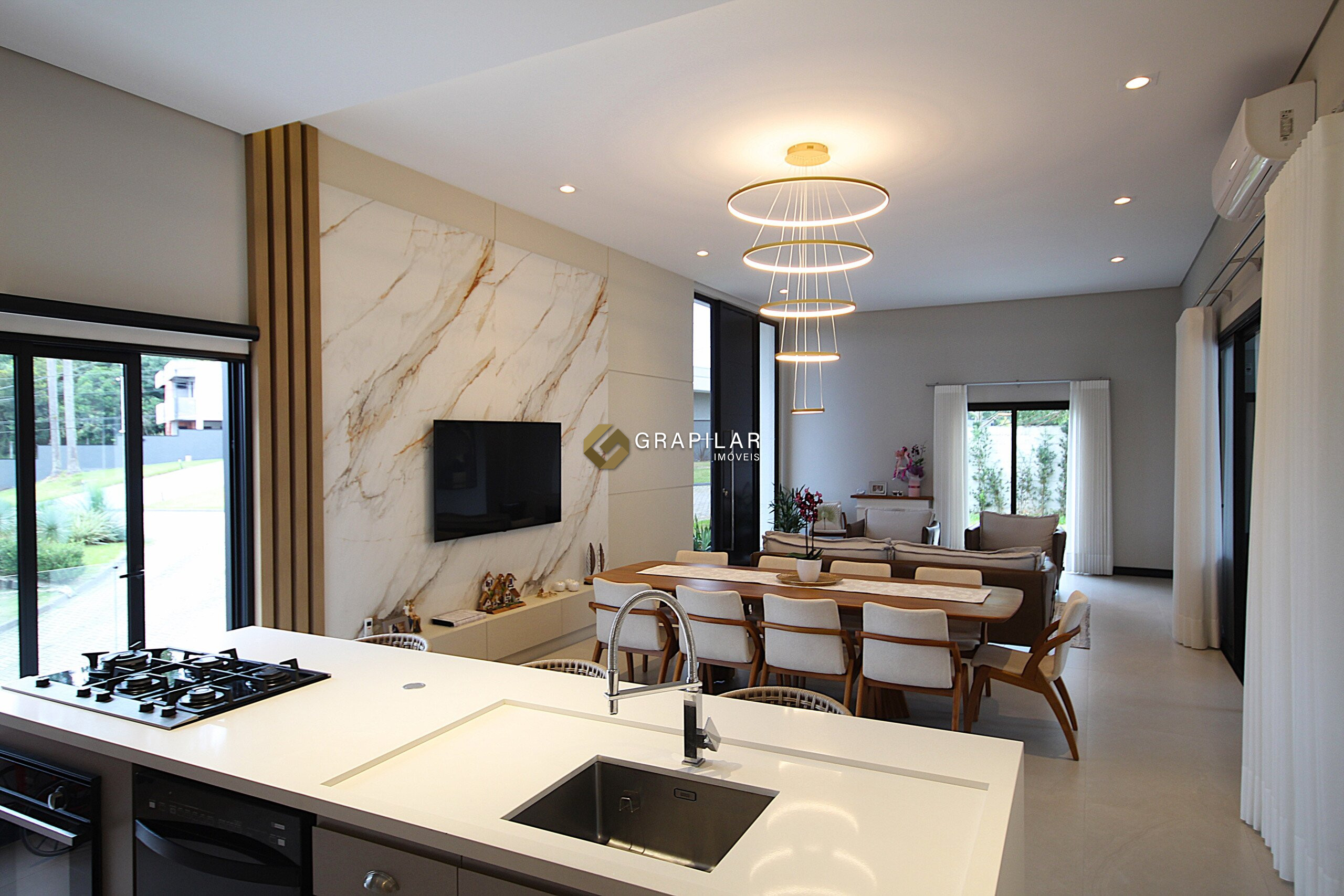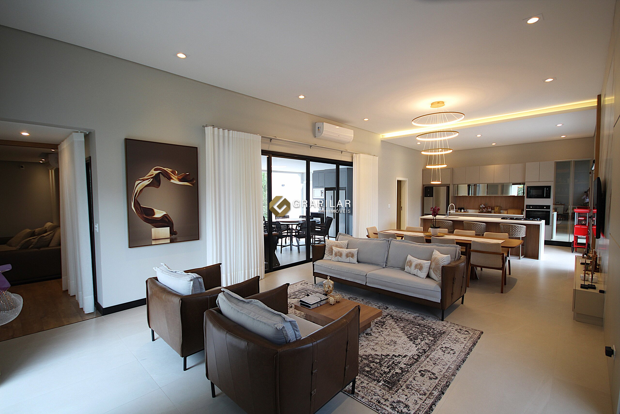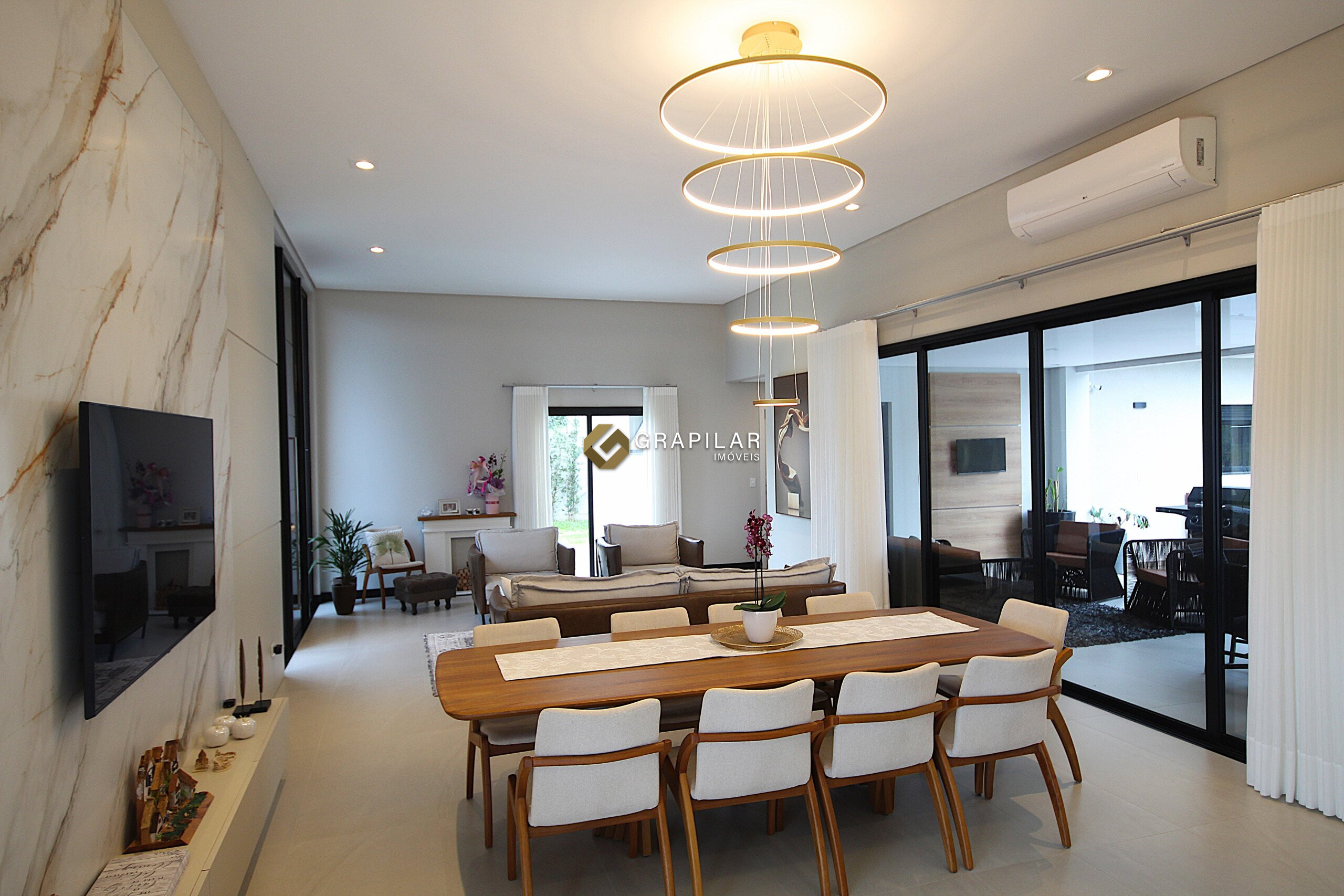 Sala de estar e jantar integradas;