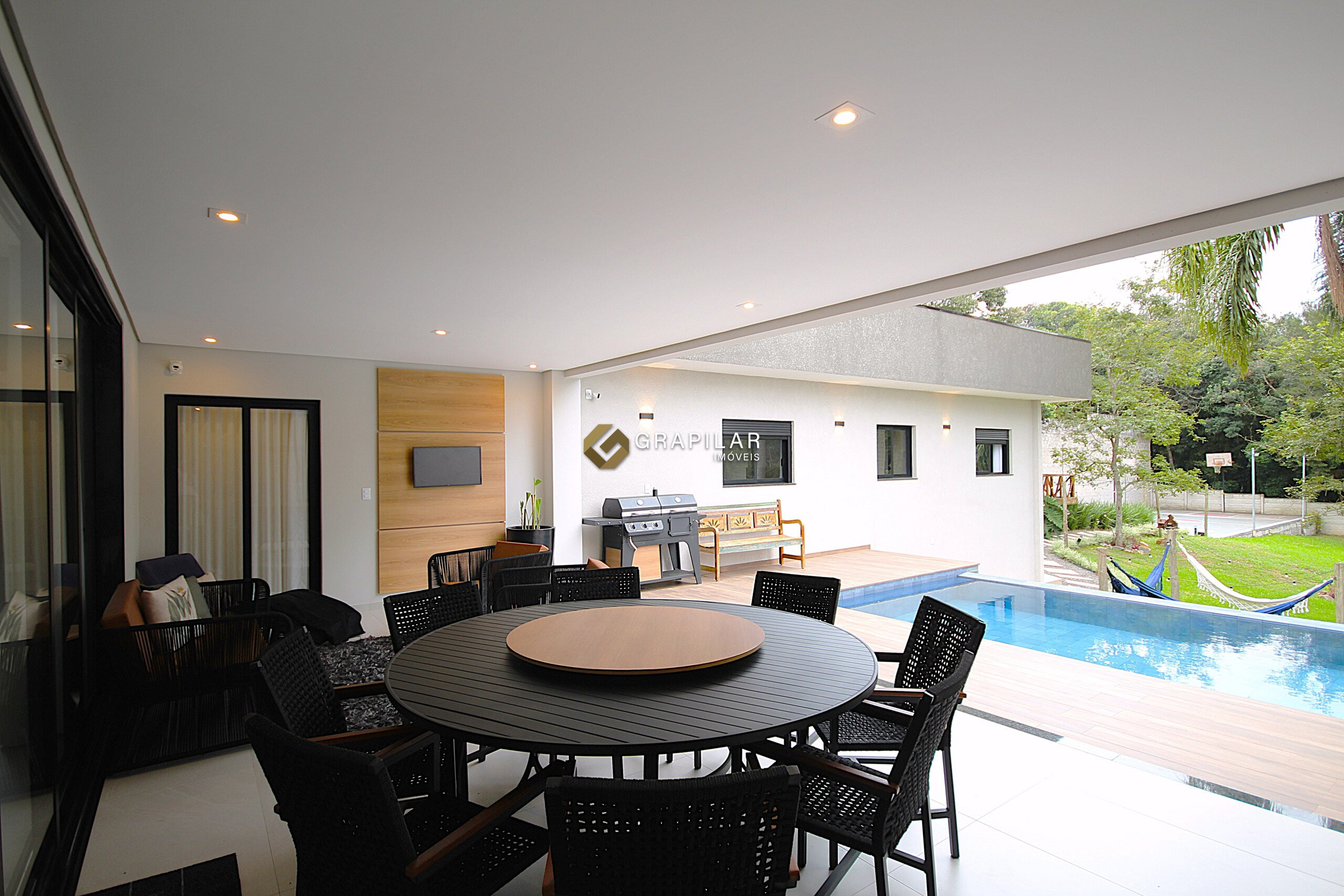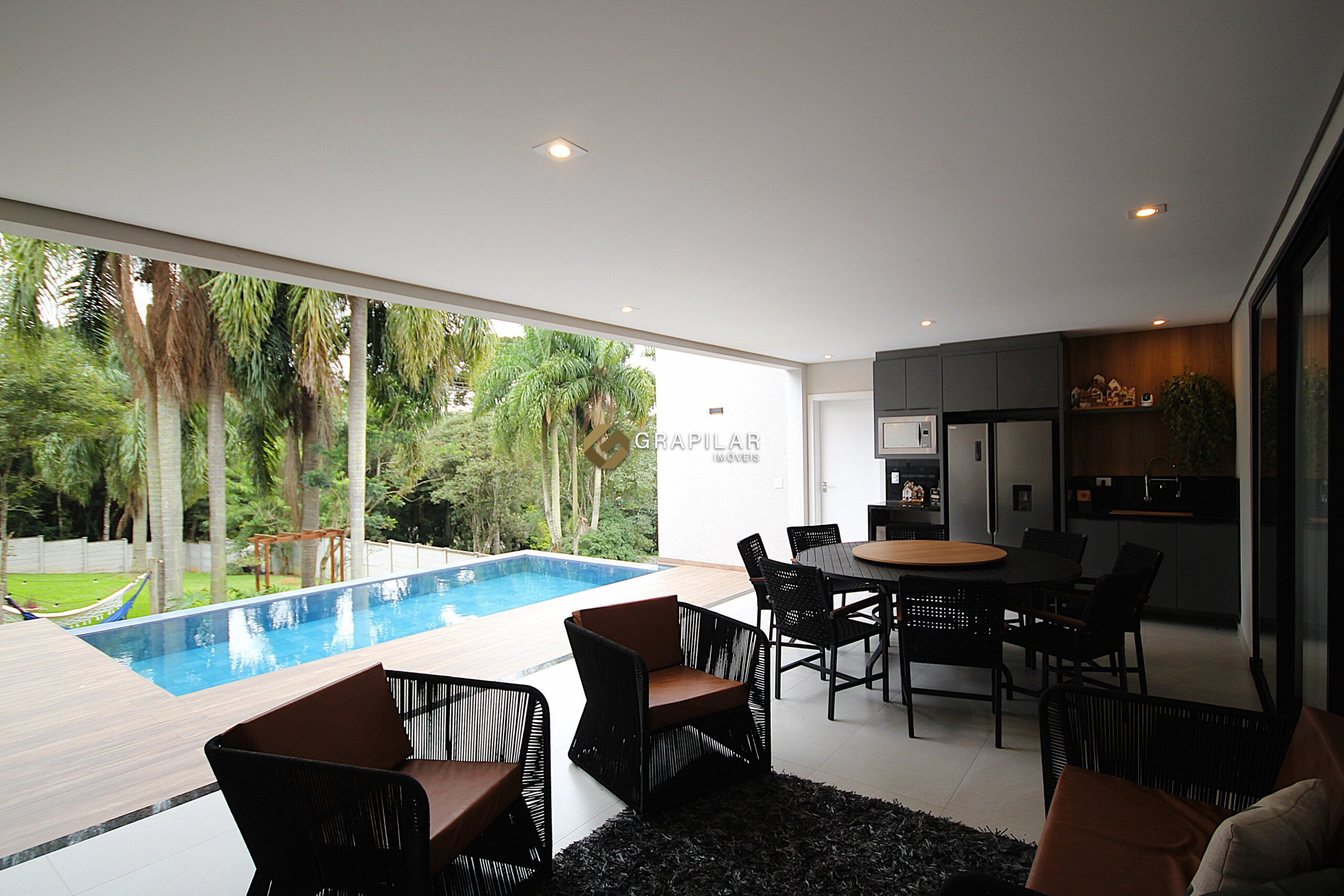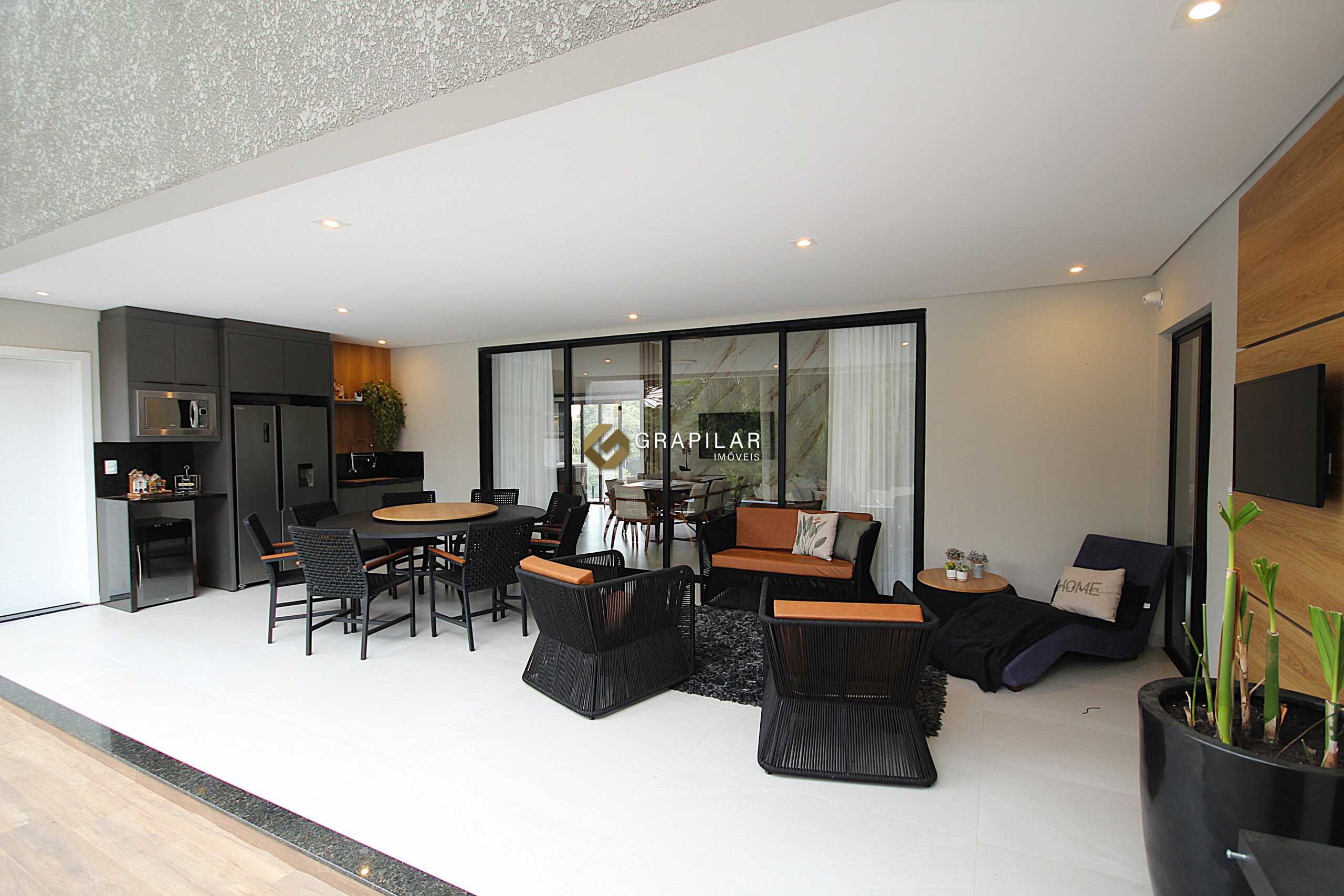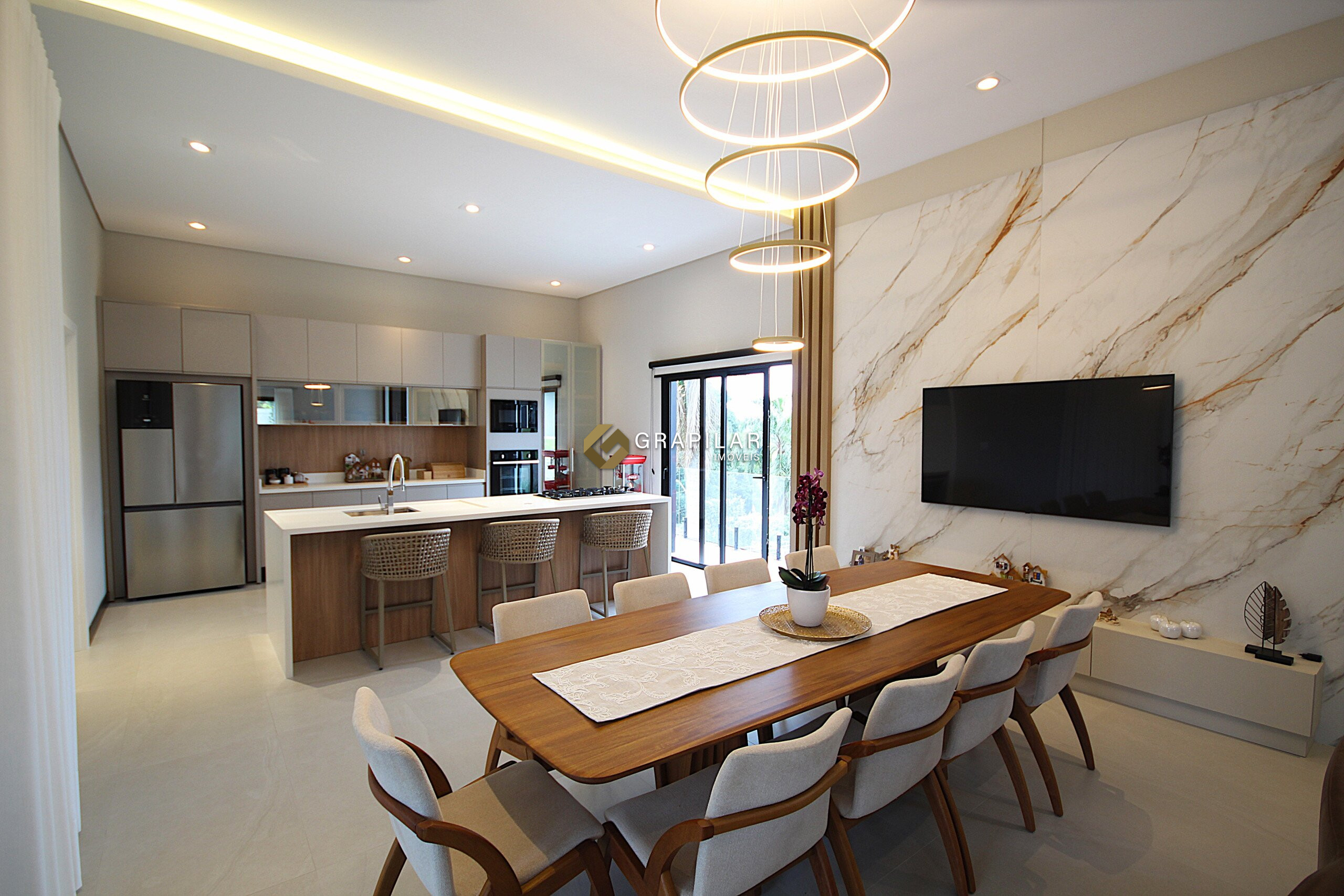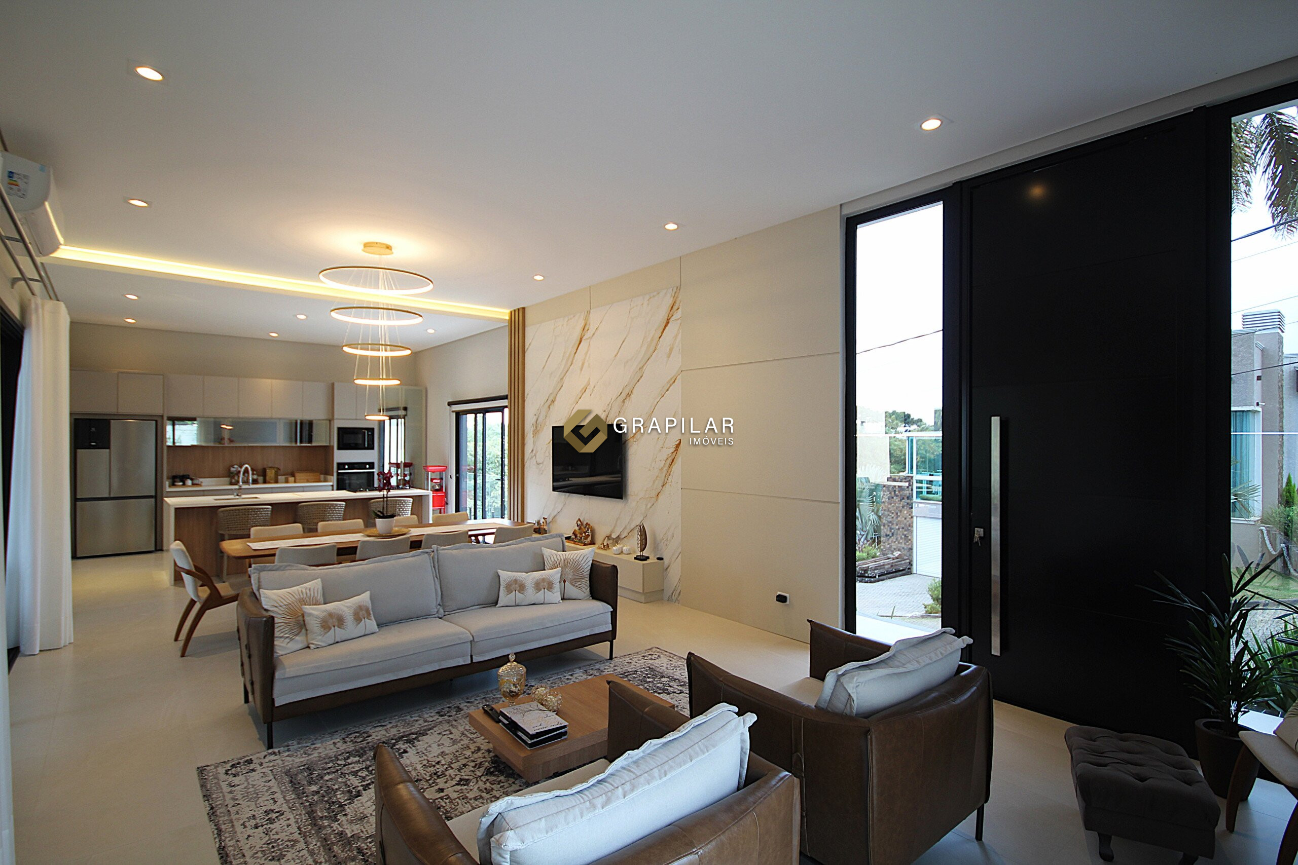 Sala de estar e jantar integradas;