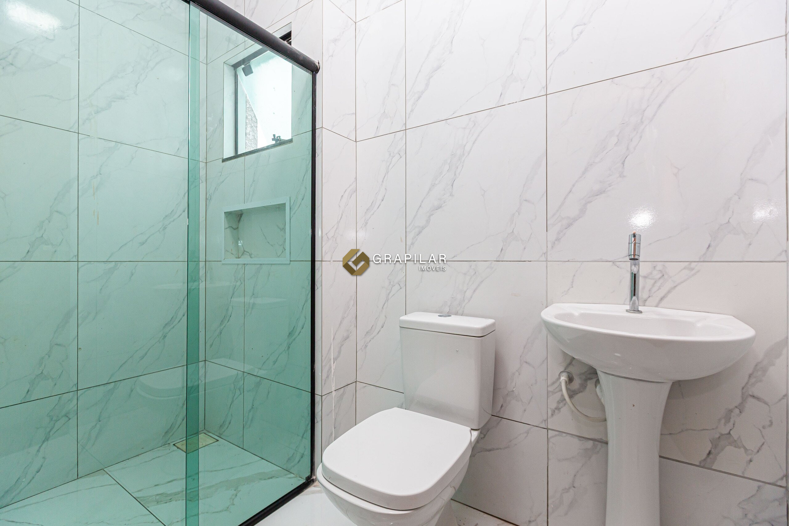 Porcelanato nas áreas molhadas.
