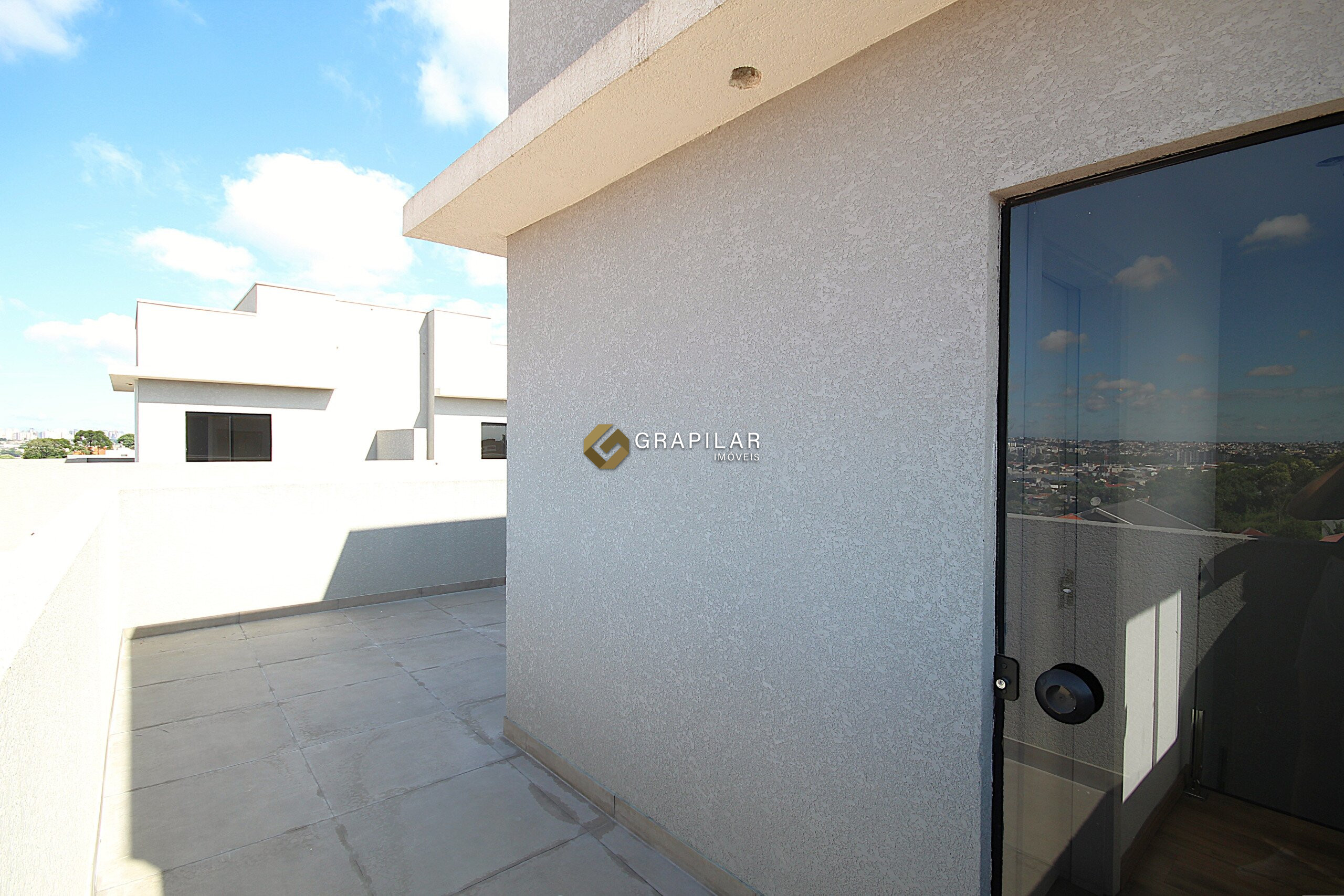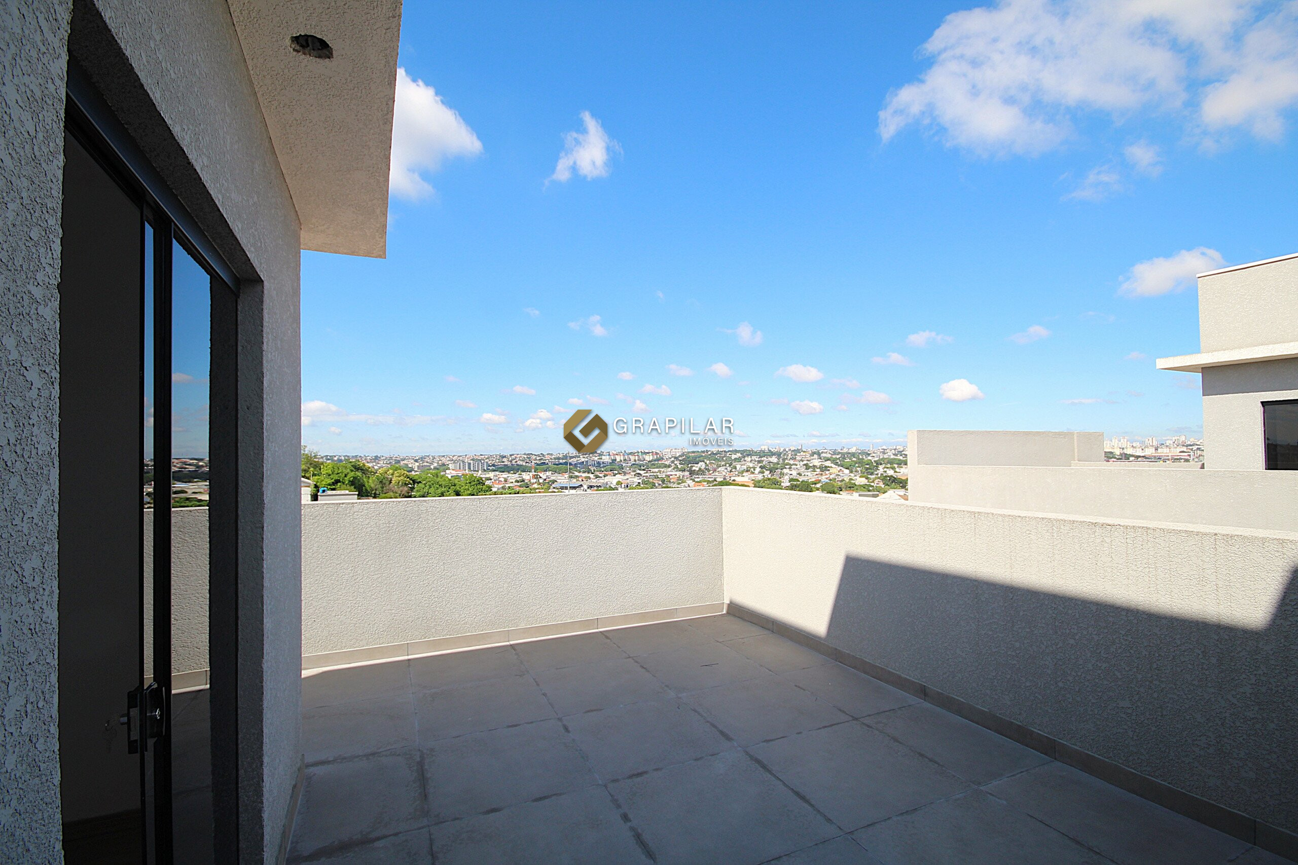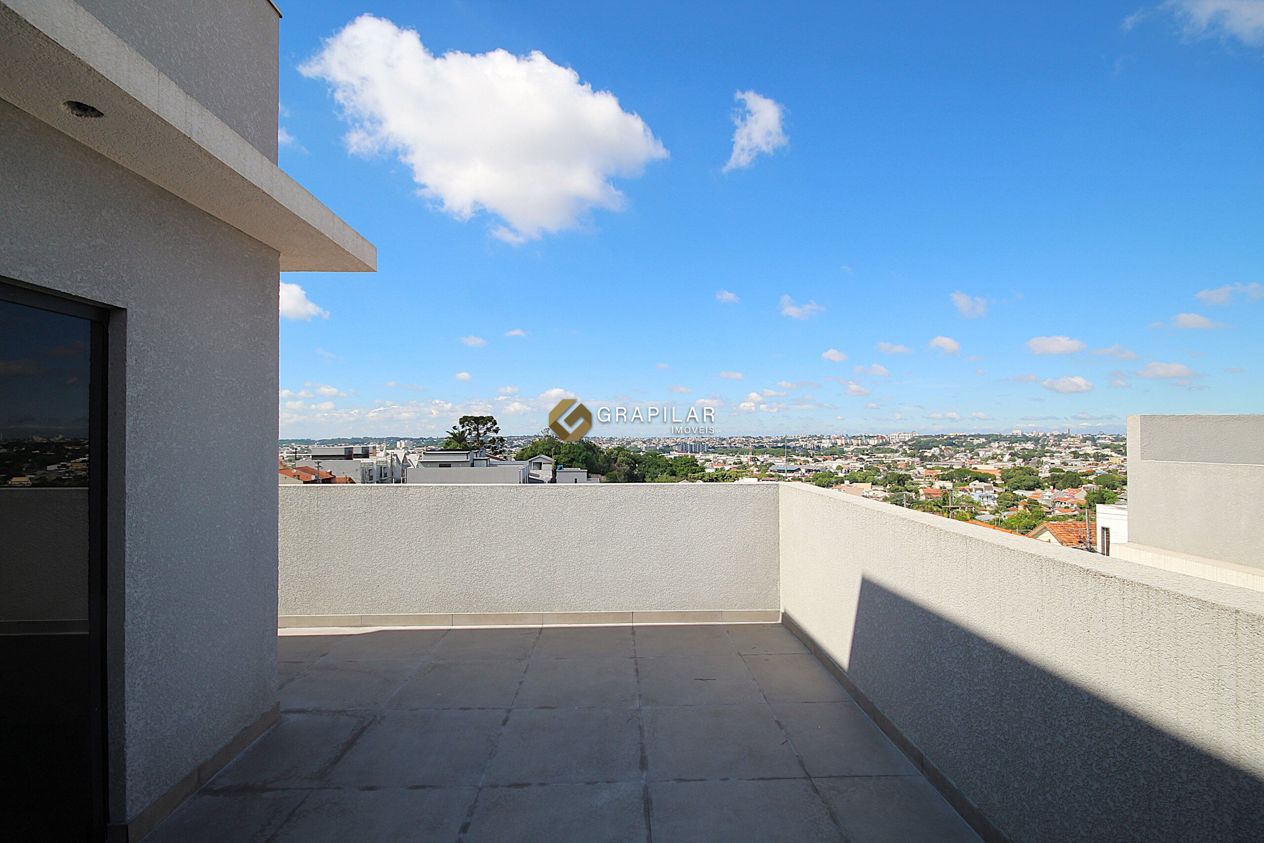 Amplo terraço em “L”, com vista panorâmica do bairro, ideal para lazer e convivência