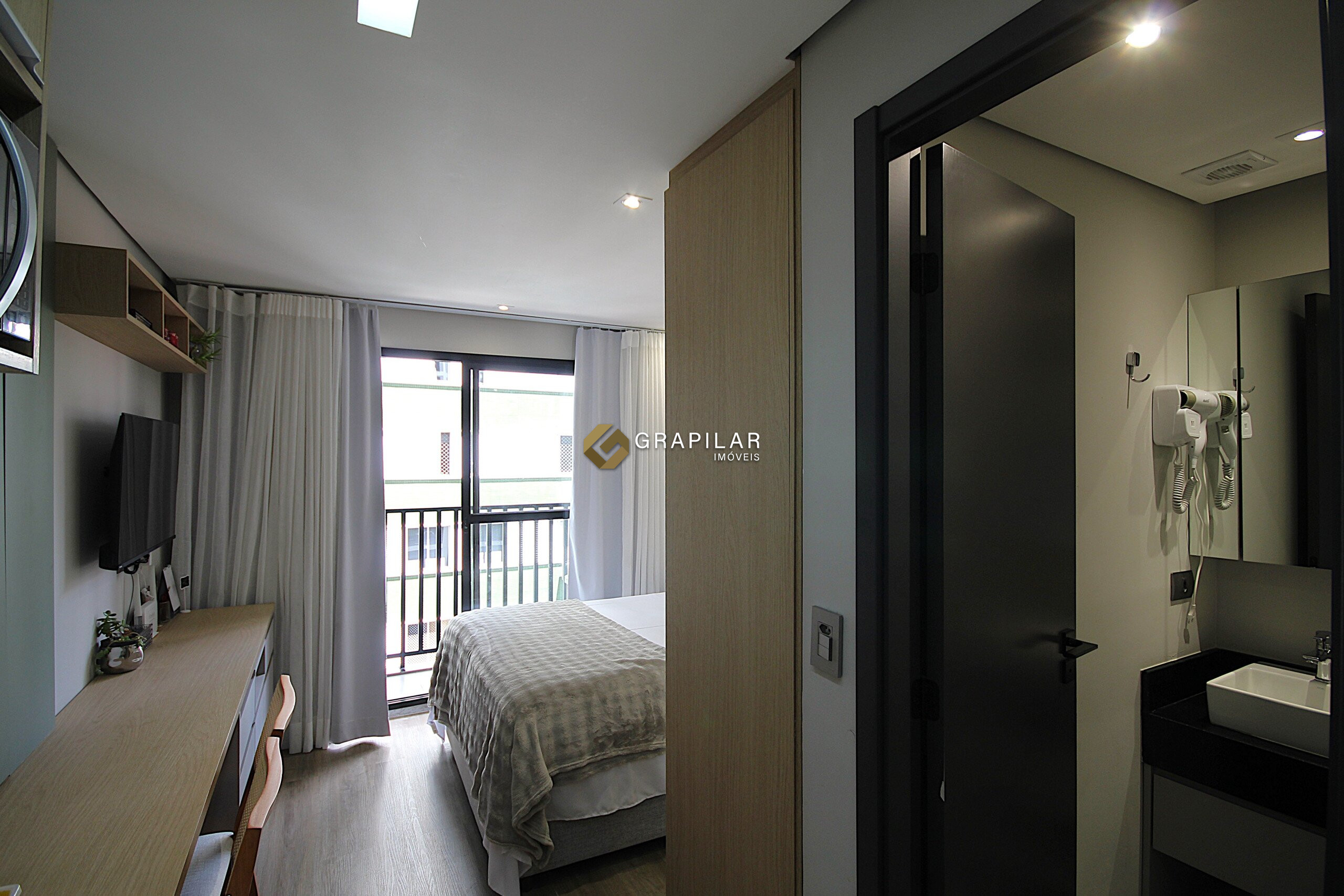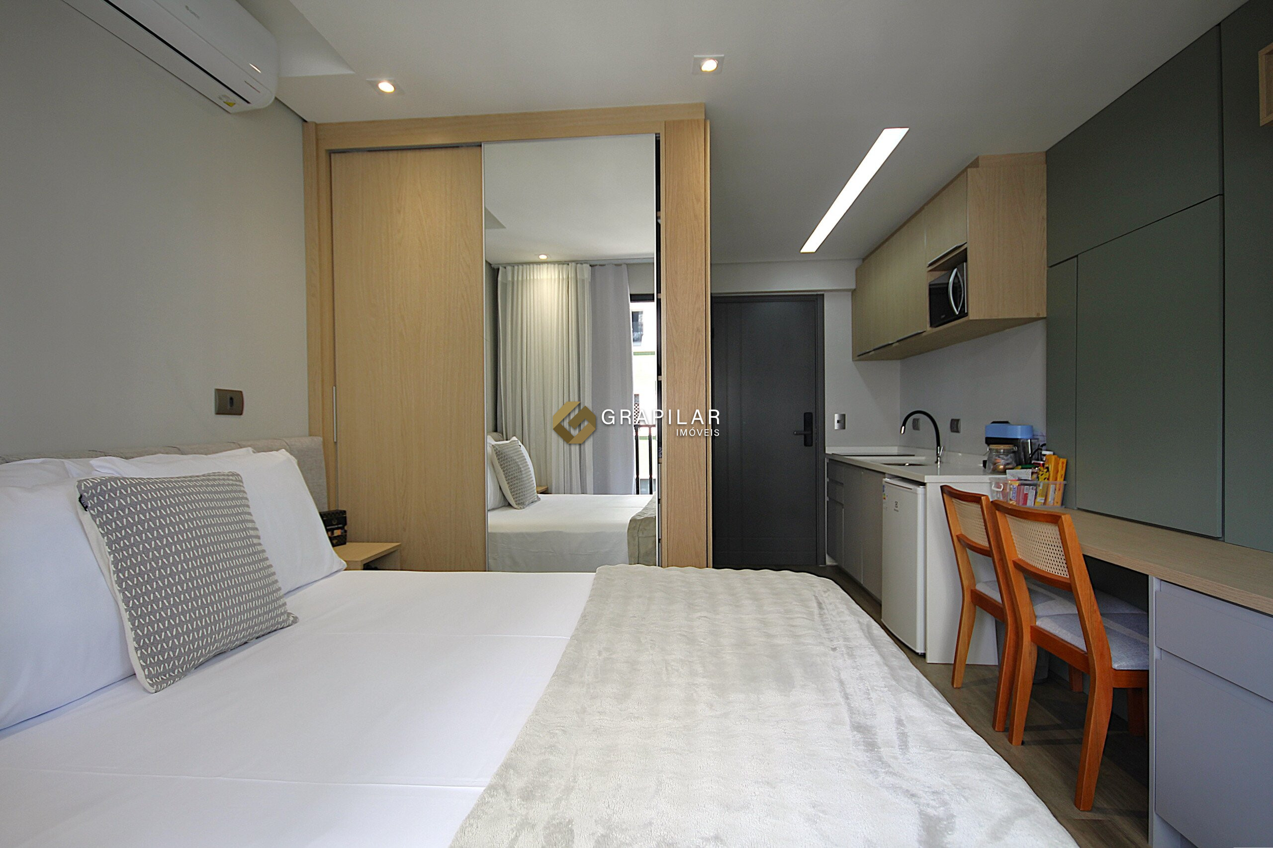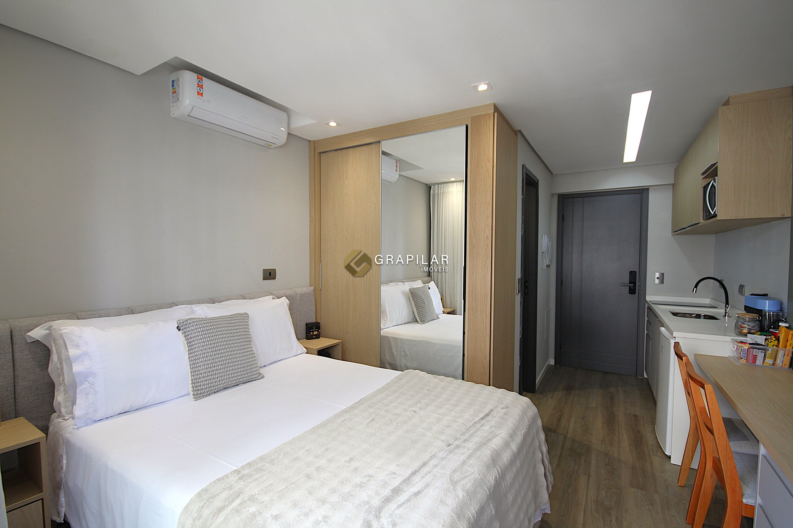 Excelente studio mobiliado à venda no bairro Água Verde, em localização privilegiada e com fácil acesso a serviços e conveniências, próximo à Panificadora Pantucci, Supermercado Festval e ao Shopping Água Verde. Com face oeste, o imóvel possui 20 m² de área privativa bem distribuídos, contemplando dormitório integrado, cozinha funcional, sacada, banheiro social e ar-condicionado, ideal para quem busca praticidade e conforto em um espaço moderno.